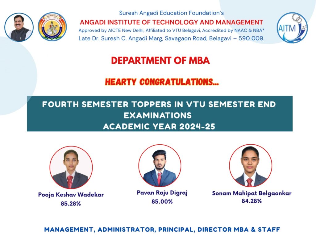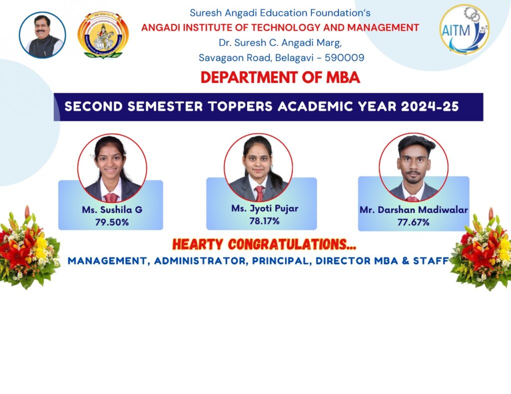 Toppers MBA TOPPERS FOURTH SEMESTER – (2024-25) MBA TOPPERS THIRD SEMESTER – (2024-25) MBA TOPPERS FIRST SEMESTER – (2024-25) MBA TOPPERS SECOND SEMESTER – (2022-23) MBA TOPPERS FOURTH SEMESTER – (2022-23)